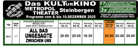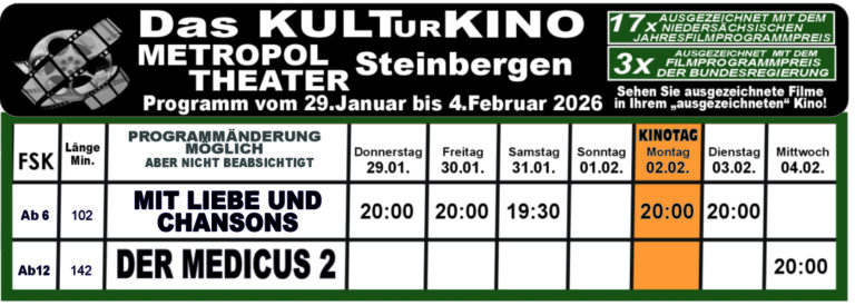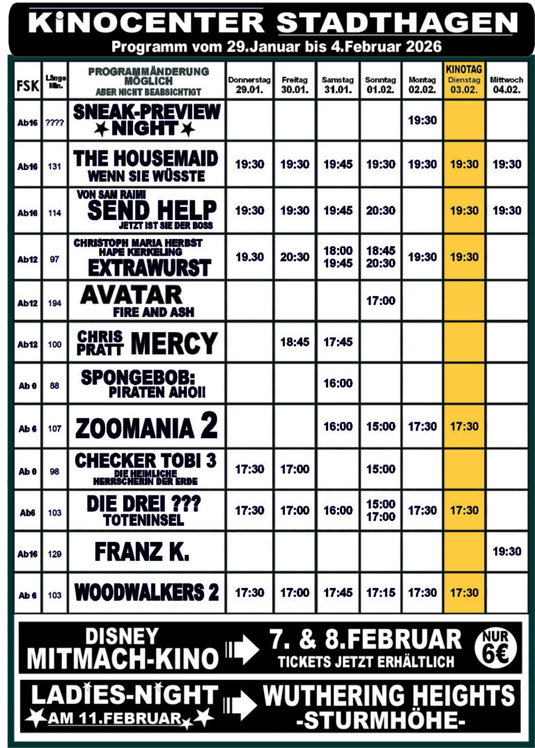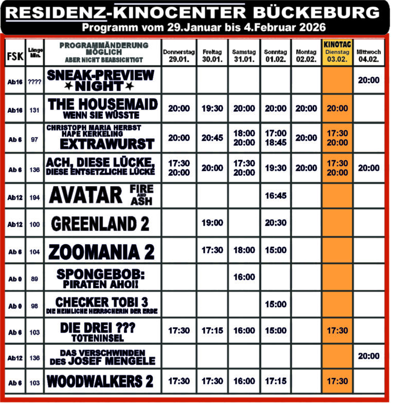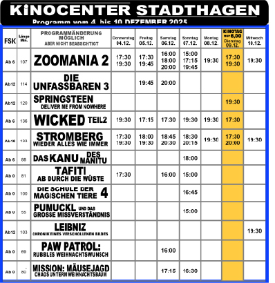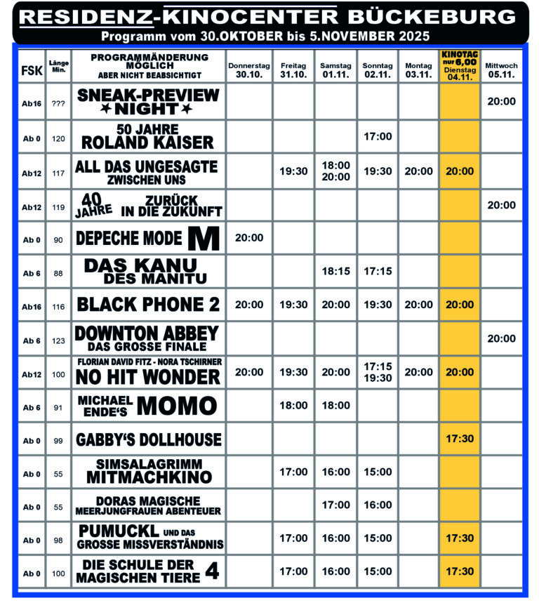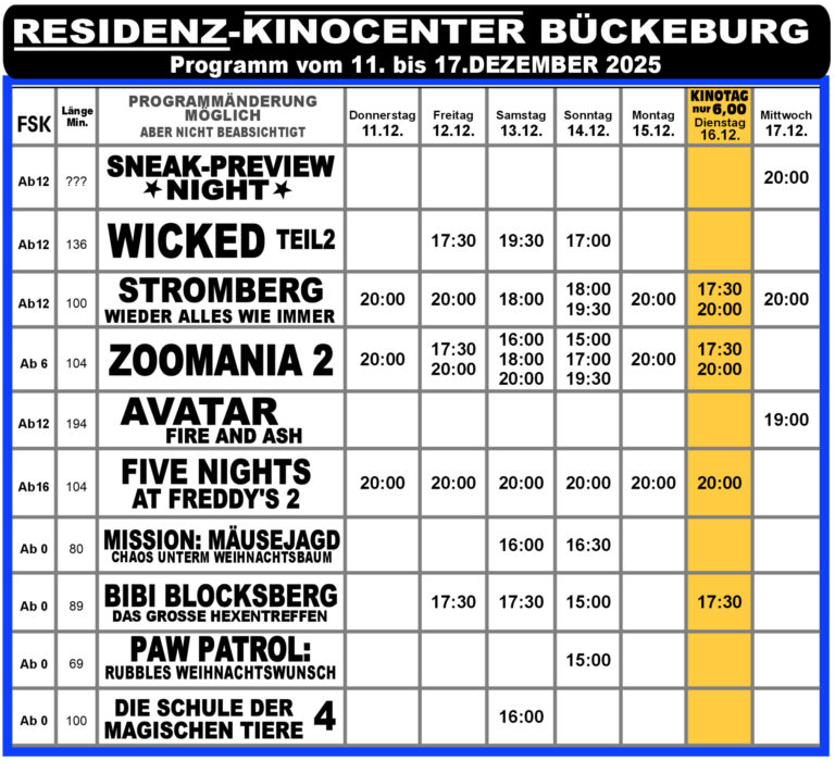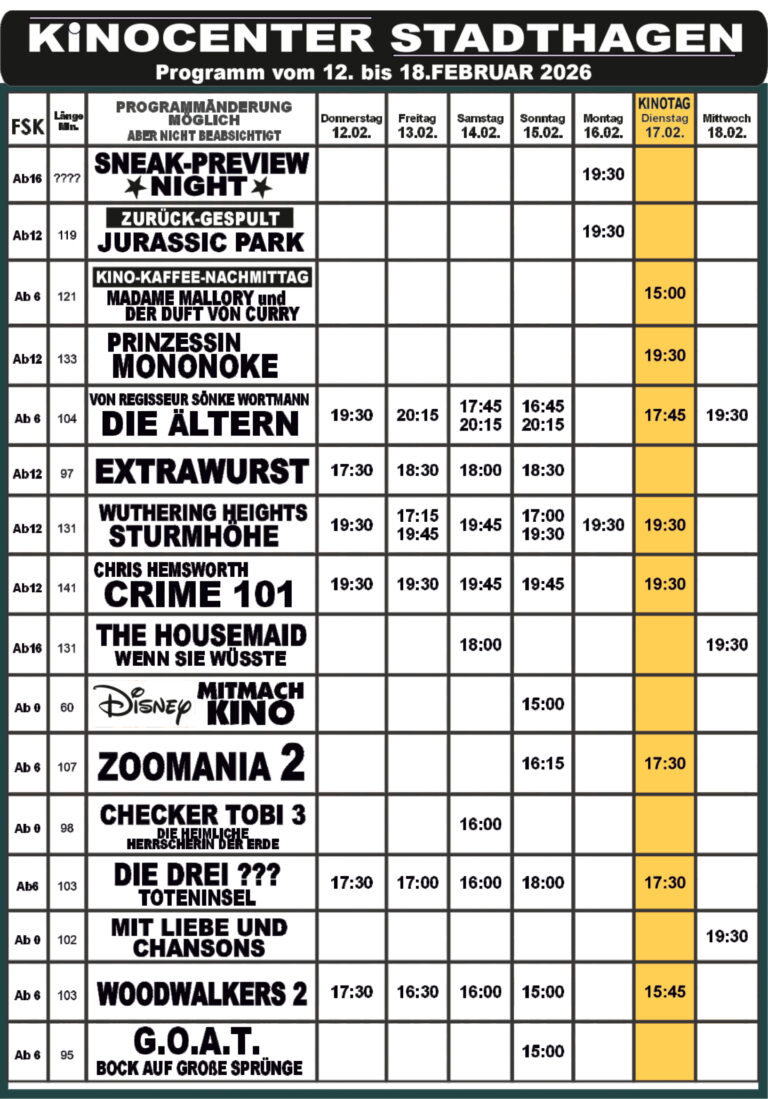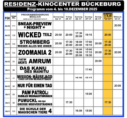 Das Kinoprogramm in Schaumburg Hier findet ihr immer das aktuelle Programm der Kinos in Schaumburg:Bad Nenndorf | Steinbergen | Stadthagen | Bückeburg Phoenix Bad Nenndorf Tickets Kinocenter Steinbergen Tickets Kinocenter Stadthagen Tickets Residenz-Kinocenter Bückeburg Tickets Mit Unterstützung von